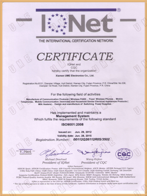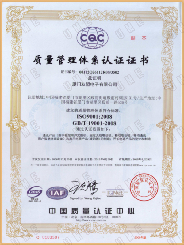 廈門友盟電子有限公司(XIAMEN UME ELECTRONICS CO.,LTD.)座落在美麗的東海之濱城市——廈門,是一家高速成長中的開關(guān)電源制造商、并提供高端通訊電子產(chǎn)品加工服務(wù)。公司致力于向客戶提供創(chuàng)新的滿足其需求的產(chǎn)品和服務(wù),為客戶創(chuàng)造長期的價值和潛在的增長。公司以“高安全性、高信賴性”為己任,追求產(chǎn)品的高質(zhì)量、高性能、以及高效率的售后服務(wù),致力于打造自有品牌UME系列產(chǎn)品。