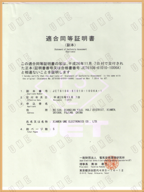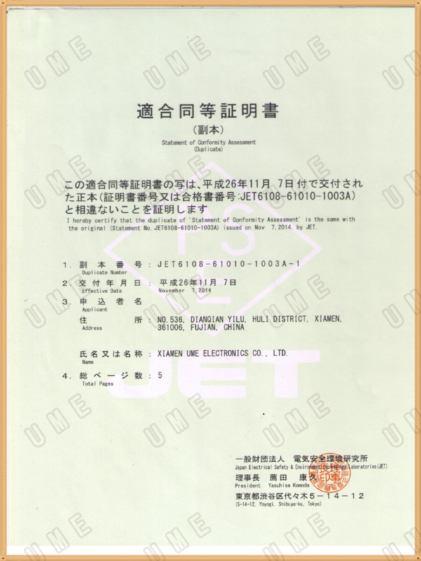 廈門友盟電子有限公司(XIAMEN UME ELECTRONICS CO.,LTD.)致力于高品質(zhì)、高信賴性電源的研發(fā)設(shè)計和生產(chǎn)制造,擁有經(jīng)驗豐富的設(shè)計團(tuán)隊、管理人員和強(qiáng)大的工程團(tuán)隊,全面滿足用戶個性化的產(chǎn)品需求。目前,我司在國內(nèi)市場、日本市場、歐美市場得到客戶的極高評價。